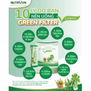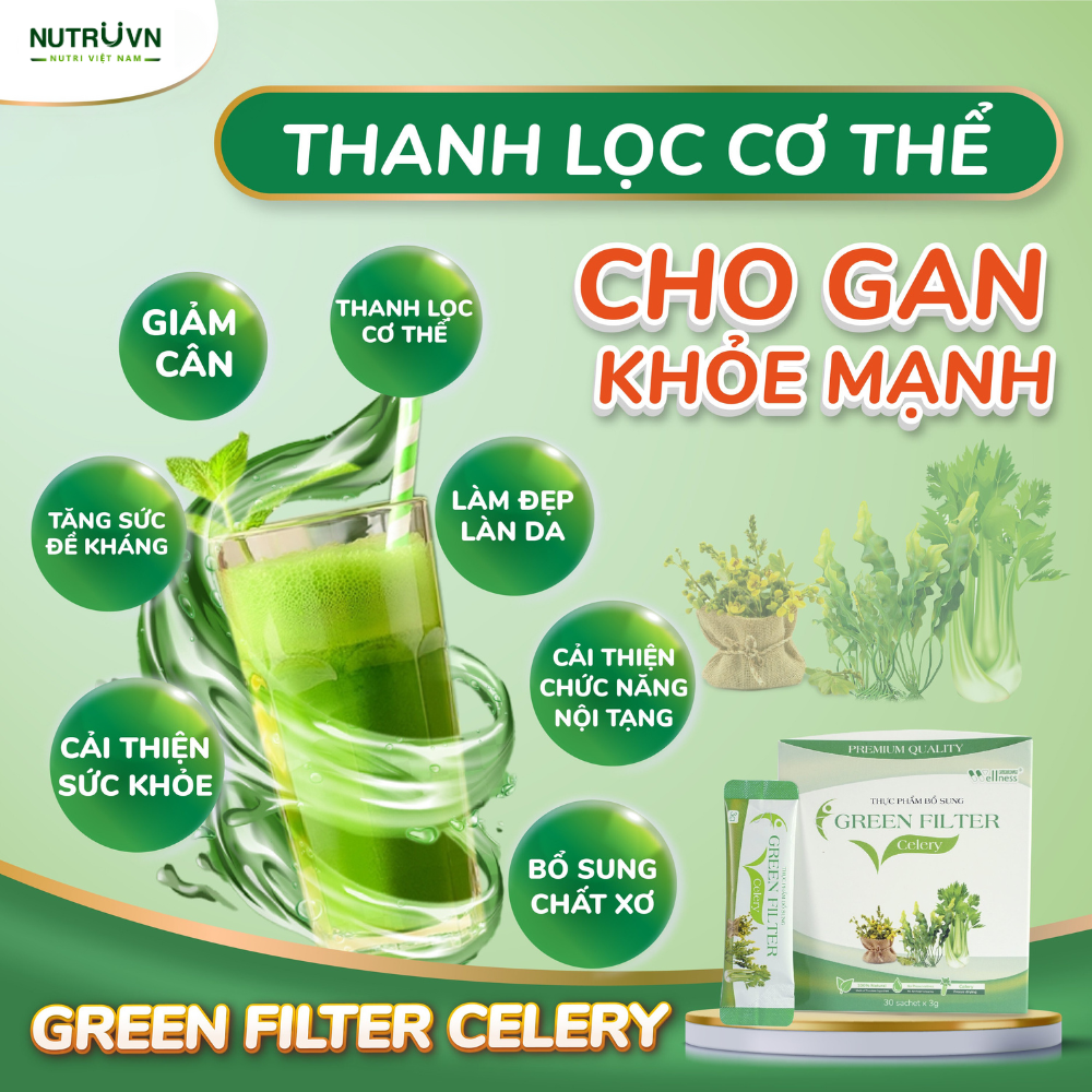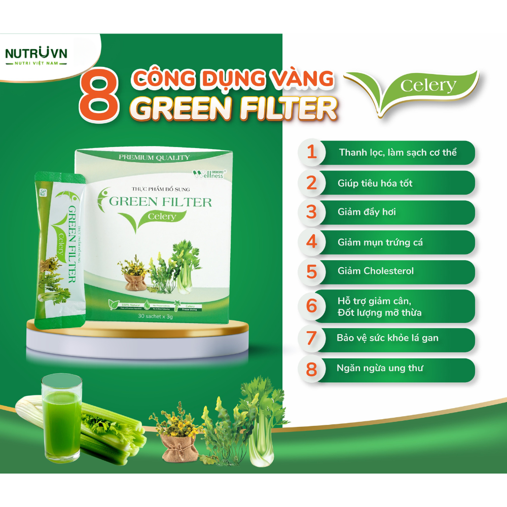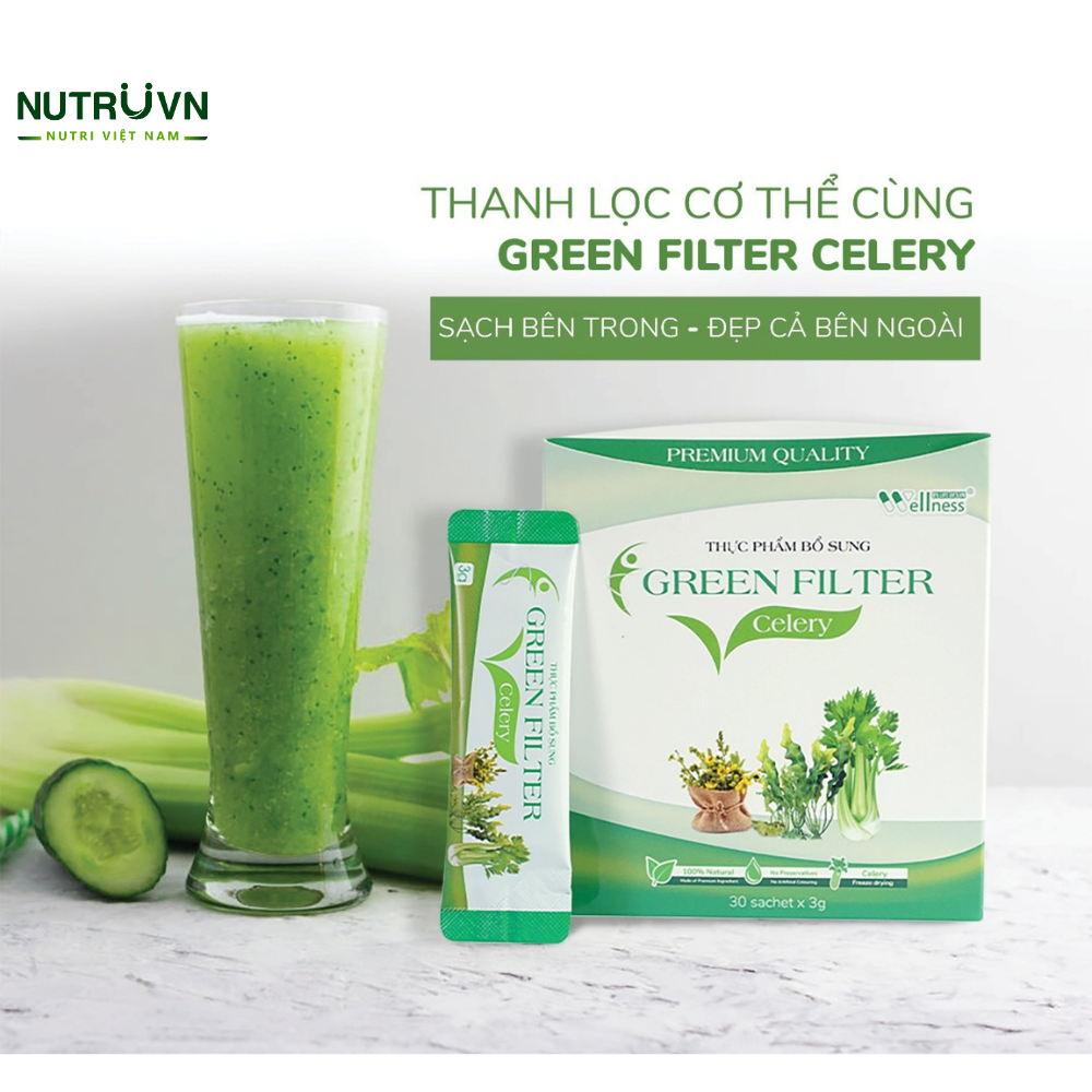 Thực phẩm bổ sung Green Filter Celery – Bột cần tây sấy lạnh giúp bổ sung chất xơ, hỗ trợ chống oxy hóa, hỗ trợ giảm cholesterol, hỗ trợ nhuận tràng và thanh lọc cơ thể.